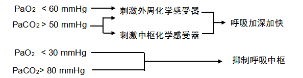 当PaO2小于30mmHg时,抑制作用大于反射性兴奋作用,从而使呼吸抑制