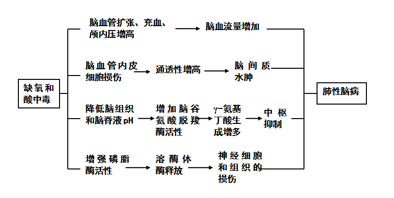缺氧和酸中毒使脑血管内皮细胞损伤,管壁通透性增高,出现脑间质水肿。