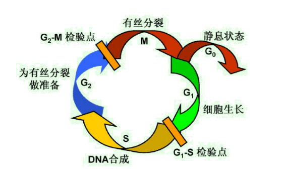 ③检查点:各时相交叉处存在着相应的检查点( checkpoint) ,对细胞的下一步增殖趋势起定向作用;