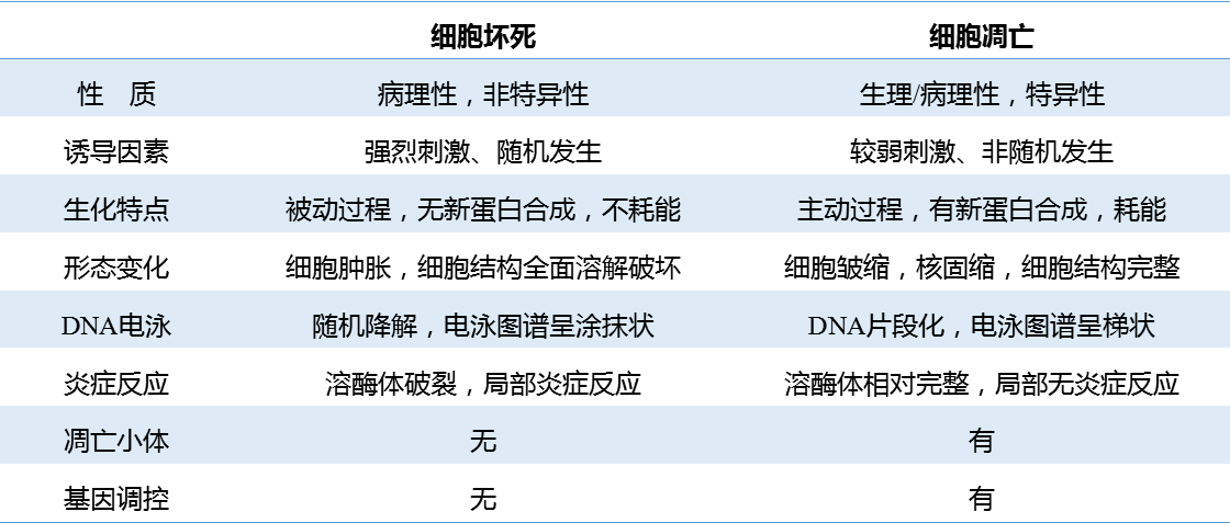细胞凋亡与细胞坏死在许多方面存在显著差异: