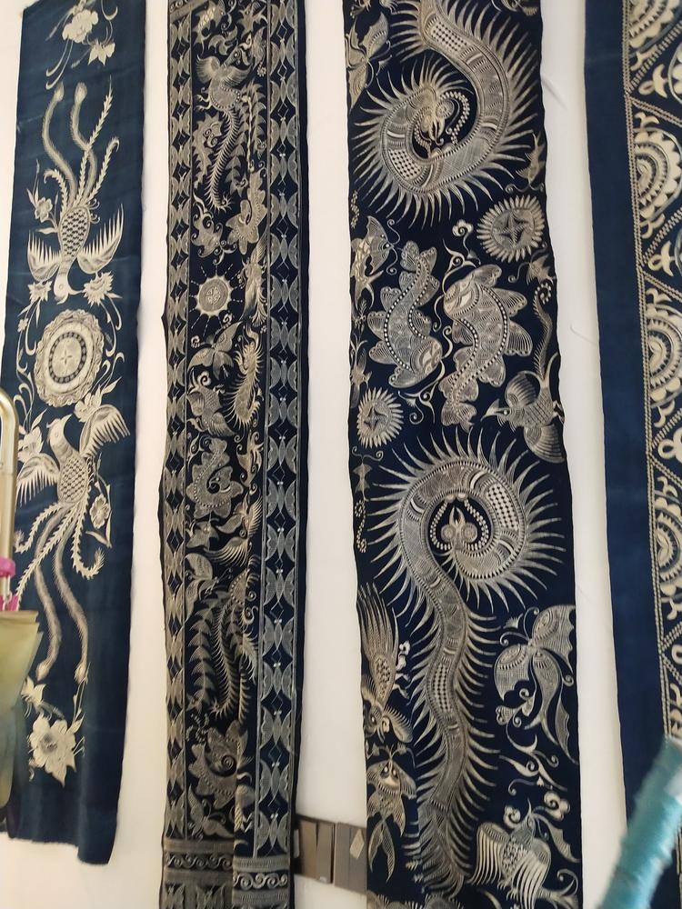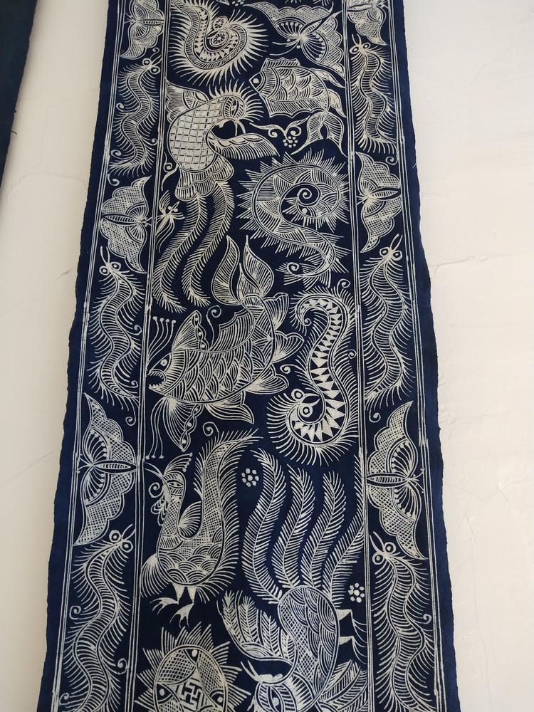 广义上的蓝印花布:包括扎染、蜡染、夹染和灰染。传统的扎染、蜡染、夹染和灰染大多以蓝靛为染料,虽然防染的方法不同,但成品都是蓝白相间的花布,所以可以统称为蓝印花布。其共同点是材料为布(或手织布),染料为植物蓝靛,制作过程为手工操作。