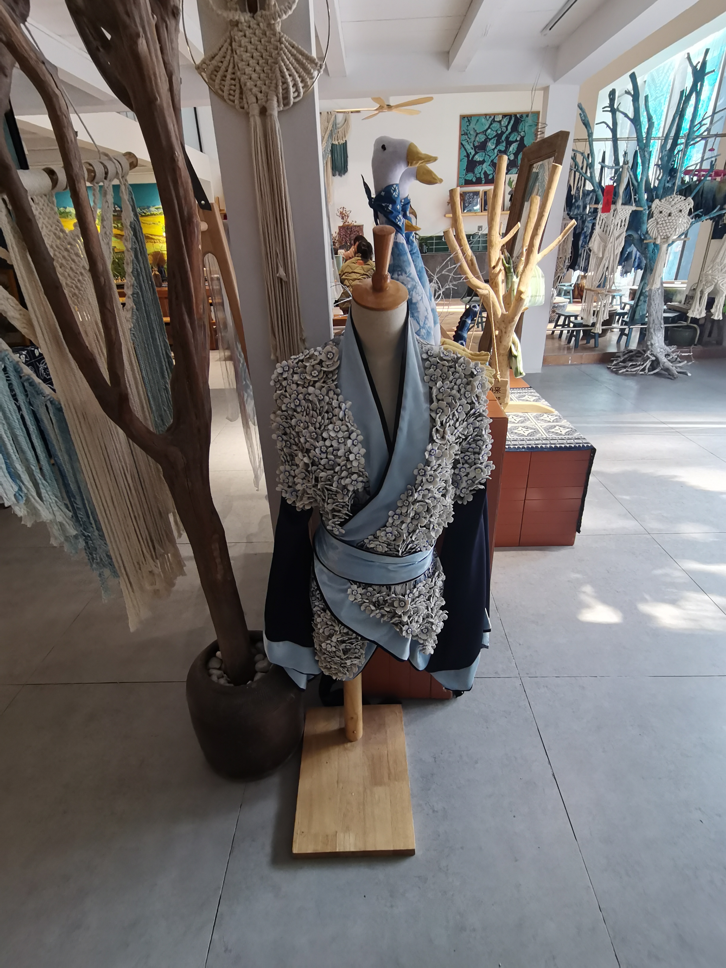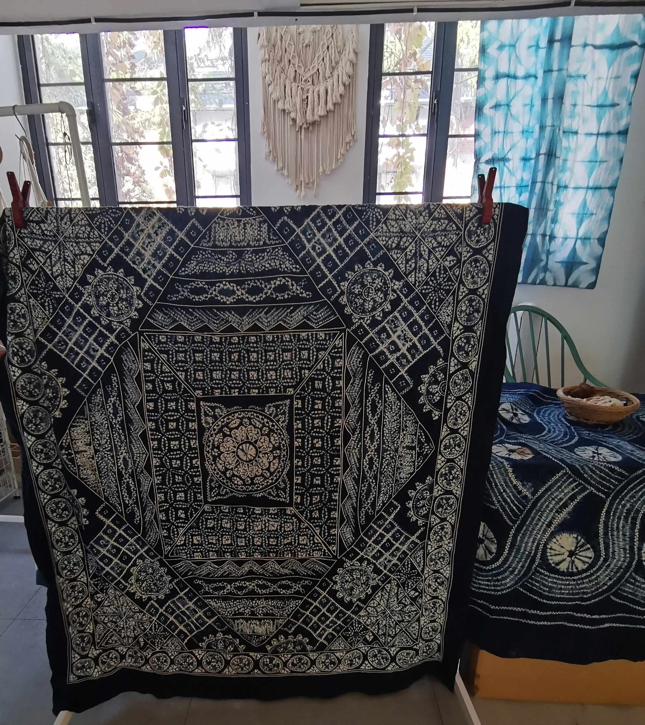 蓝印花布是中国的一种工艺品,是传统的镂空版白浆防染印花,又称靛蓝花布,俗称药斑布、浇花布等。是中国传统的工艺印染品,镂空版白浆防染印花,距今已有一千三百年历史,主产地包括江苏省南通市、浙江省桐乡市、湖南省邵阳市、山东省兰陵县等地。最初以蓝草为染料印染而成。蓝印花布用石灰、豆粉合成灰浆烤蓝,采用全棉、全手工纺织、刻版、刮浆等多道印染工艺制成。