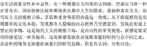 5.分析老舍小说中“市民世界”的人物形象构成,阅读研究文献,理解其创作的文化批判视野。