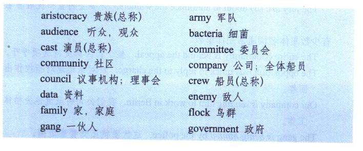 集体名词表示由个体组成的集体,下面是一些常见的集体名词:
