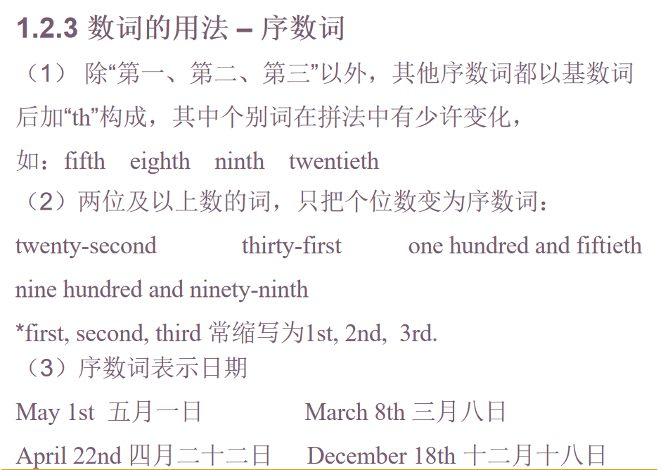 数词(Numeral)是表示数目或顺序的词。数词分为基数词(Cardinal Numerals)、序数词(Numerals)和分数词(Fractional Numberals)。