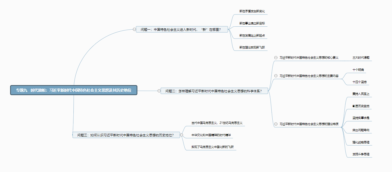(一)重点:习近平新时代中国特色社会主义思想创立的社会历史条件;习近平新时代中国特色社会主义思想要面对和解决的重大时代课题、核心要义、主要内容。