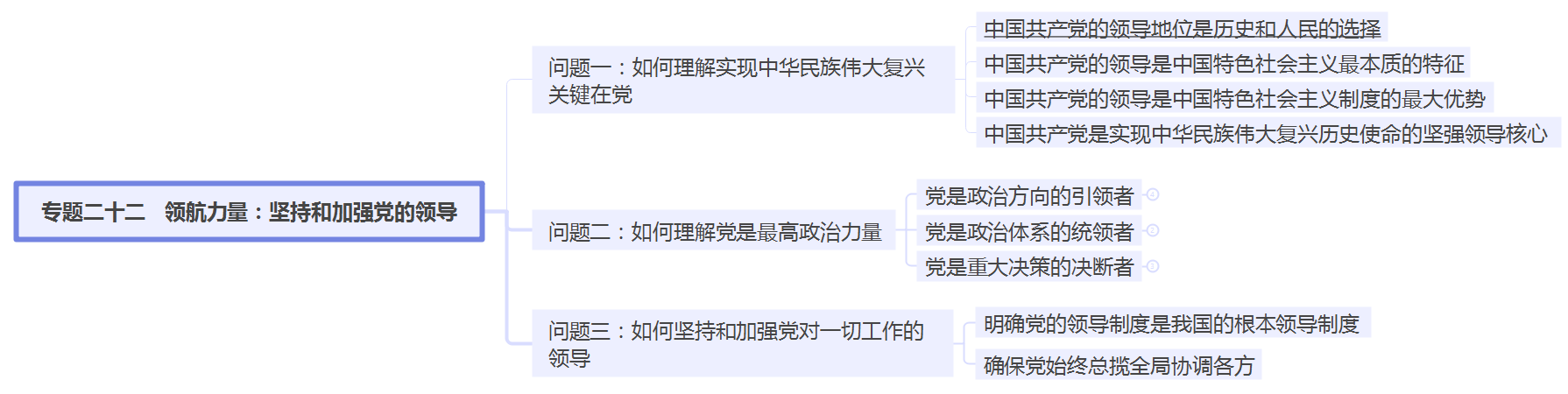 1.理解中国共产党的领导地位是历史和人民的选择,把握党的领导是中国特色社会主义最本质的特征,掌握新时代中国共产党的历史使命;
