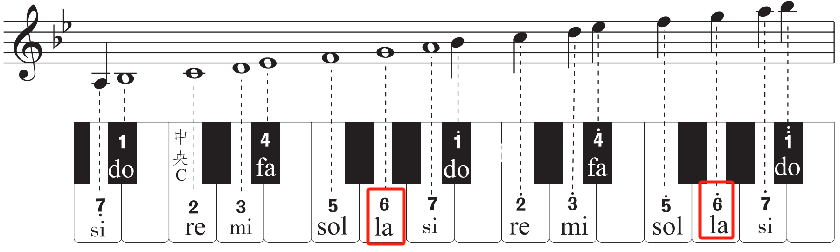 (一)g小调音阶在键盘上的位置,g小调与其关系大调的逻辑关系。