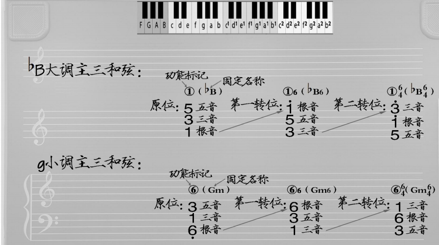 三、♭B 大调、g小调主和弦构成。