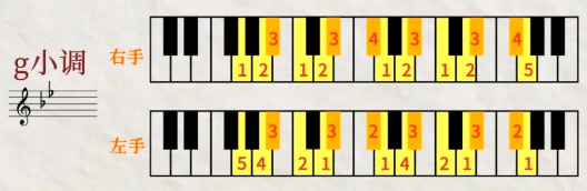 二、g小调音阶左右手指法。