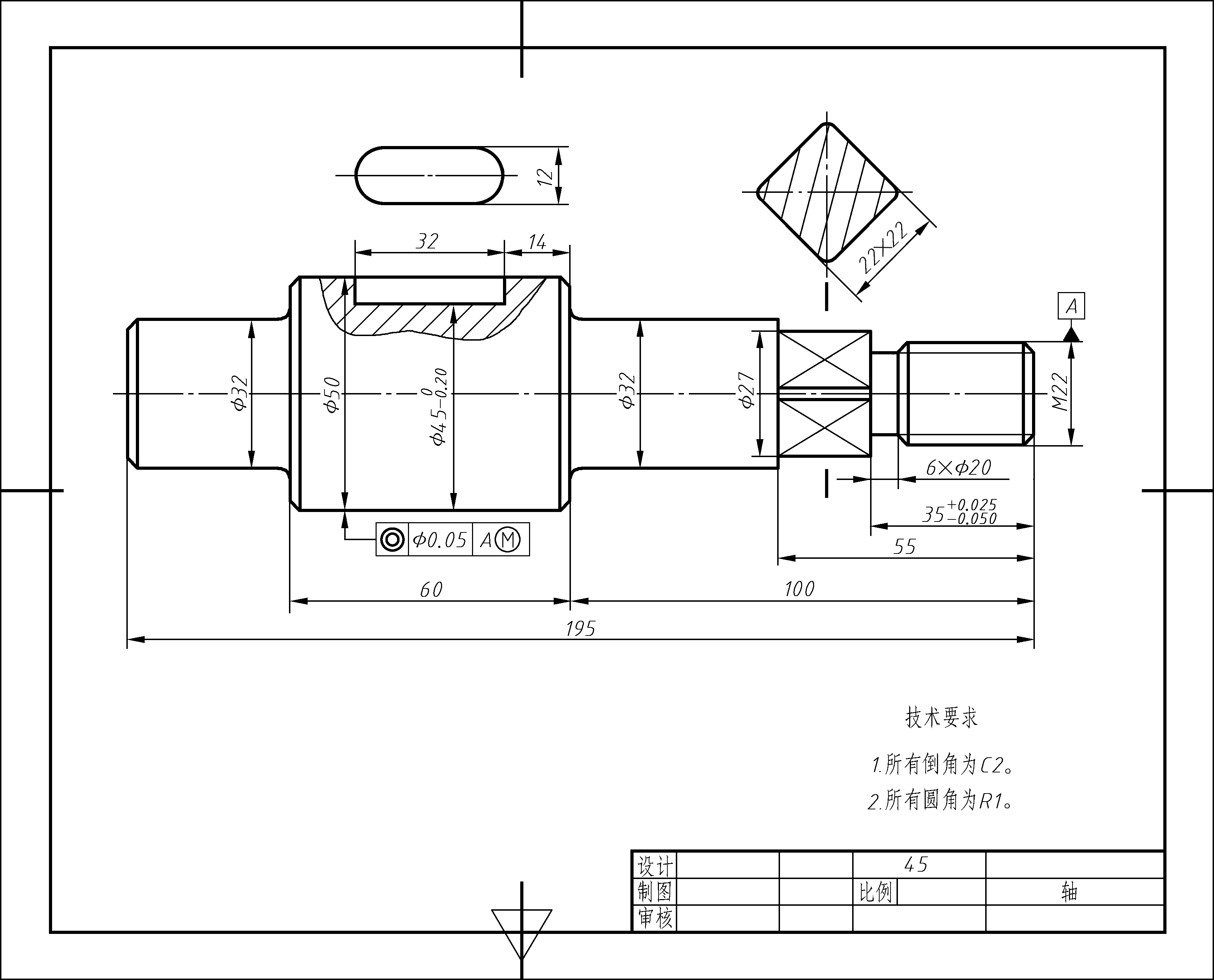 能准确标注轴类零件的尺寸、形位公差和表面粗糙度,正确添加图框与标题栏。