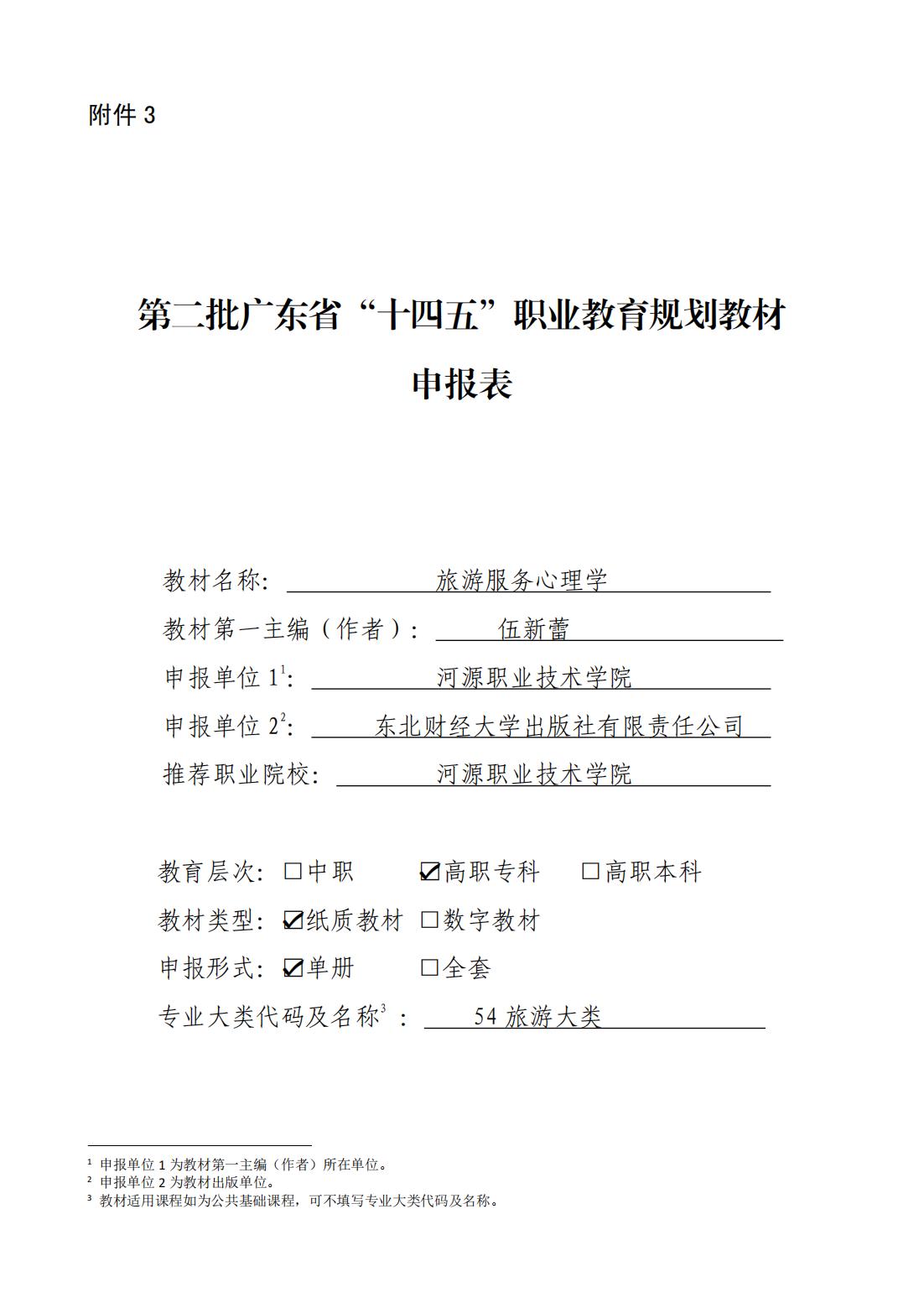 1.1 报送第二批“十四五”广东省职业教育规划教材推荐材料的报告