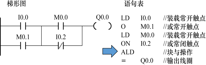 用于两个或两个以上并联电路块的串联指令。在S7200中,如果要做一个逻辑串的运算结果值和另一个逻辑串的运算结果值之间的与运算时,不能用A指令,只能用ALD指令。