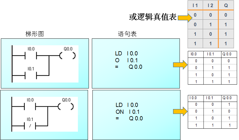 或逻辑指令O做或逻辑运算,或非逻辑指令ON做或非逻辑运算,也就是用取反以后的值参加或逻辑运算。