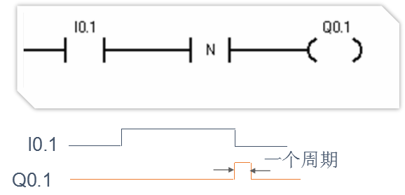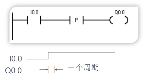 在EU指令前的逻辑运算结果有一个上升沿时产生一个宽度为一个扫描周期的脉冲。
