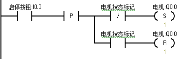 用同一个按钮I0.0去控制电机Q0.0的启停操作。其中按钮I0.0为瞬态按钮。Q0.0=1电机启动,Q0.0=0电机停止。