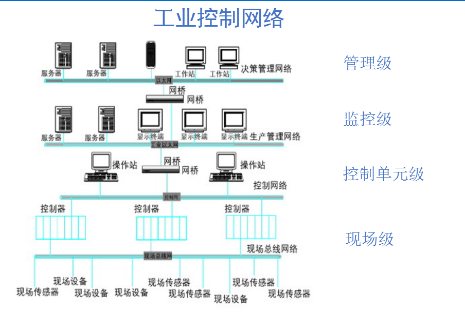 工业控制网络要求传输的数据量较大,现场总线网络要求数据通信的实时性要高。