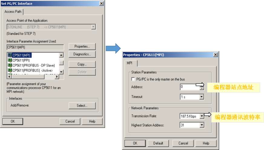 3、PLC的MPI接口参数设置