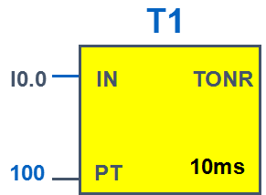 在使能(IN)输入为 1 时开始计时。如果定时器的当前值大于或者等于预设值(PT),TONR 输出为 1。