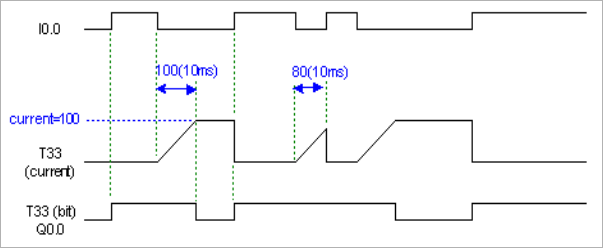当使能输入端为 1 时,TOF位立即接通(信号 1),同时将定时器的当前值复位。