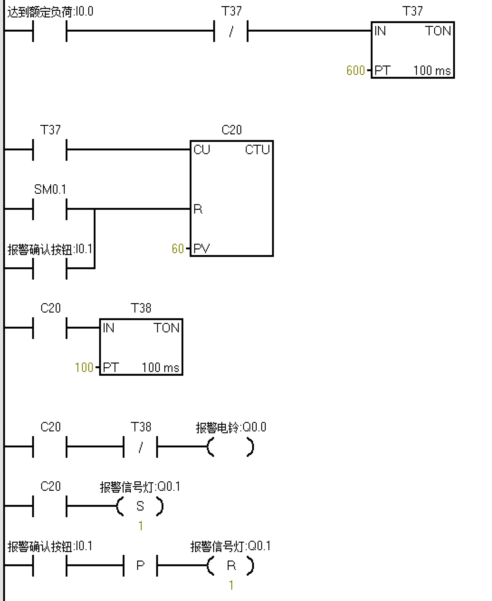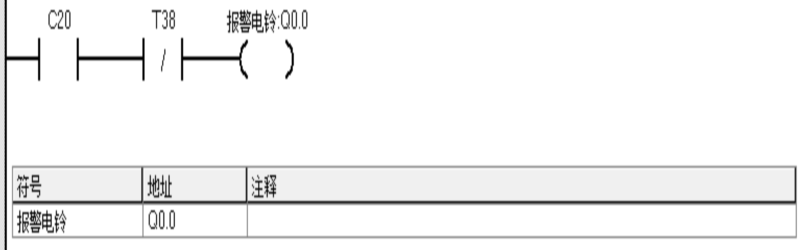 (3)计数器达到预设值,启动T38,定时电铃响时间