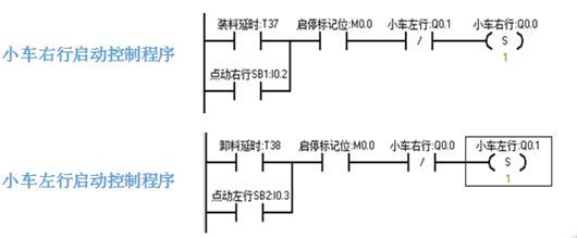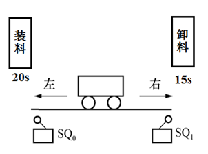 该任务完成物料的自动上下料和运输,其工艺过程如下:当启动按钮SB3后,小车在限位开关SQ0处装料,延时20S后,装料结束;小车开始右行,碰到限位开关SQ1后,小车停止;开始卸料,延时15秒后,卸料结束,小车左行,左行碰到限位开关SQ0后,小车停止,又开始装料。。。。如此周而复始的循环工作,直到按下停止按钮SB0