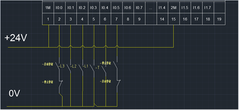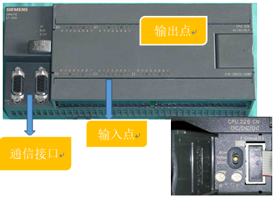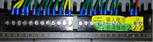 输入点的接线端子,标有各端子对应的地址,分别是:I0.0~I0.7,I1.0~I1.7,I2.0~I2.7,这里共有24个数字量输入点。