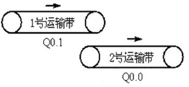 两条运输带顺序相连,按下启动按钮I0.0,2号运输带开始运行,10S后,1号运输带自动启动。I0.1为停机按钮,停机的顺序与启动的顺序刚好相反,间隔时间为10s.