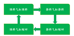 系统启动,条件满足时,顶料电磁阀顶料——推料电磁阀推料——推料电磁阀返回——顶料电磁阀缩回,如此周而复始