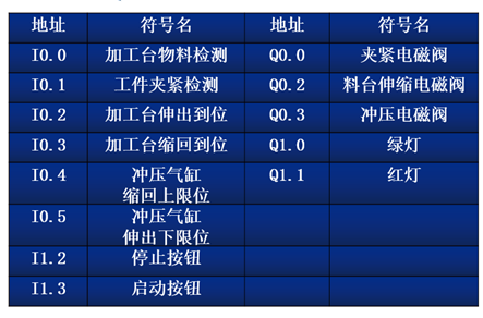 1、初始状态:设备上电和气源接通后,滑动加工台伸缩气缸处于伸出位置,加工台气动手爪松开的状态,冲压气缸处于缩回位置。