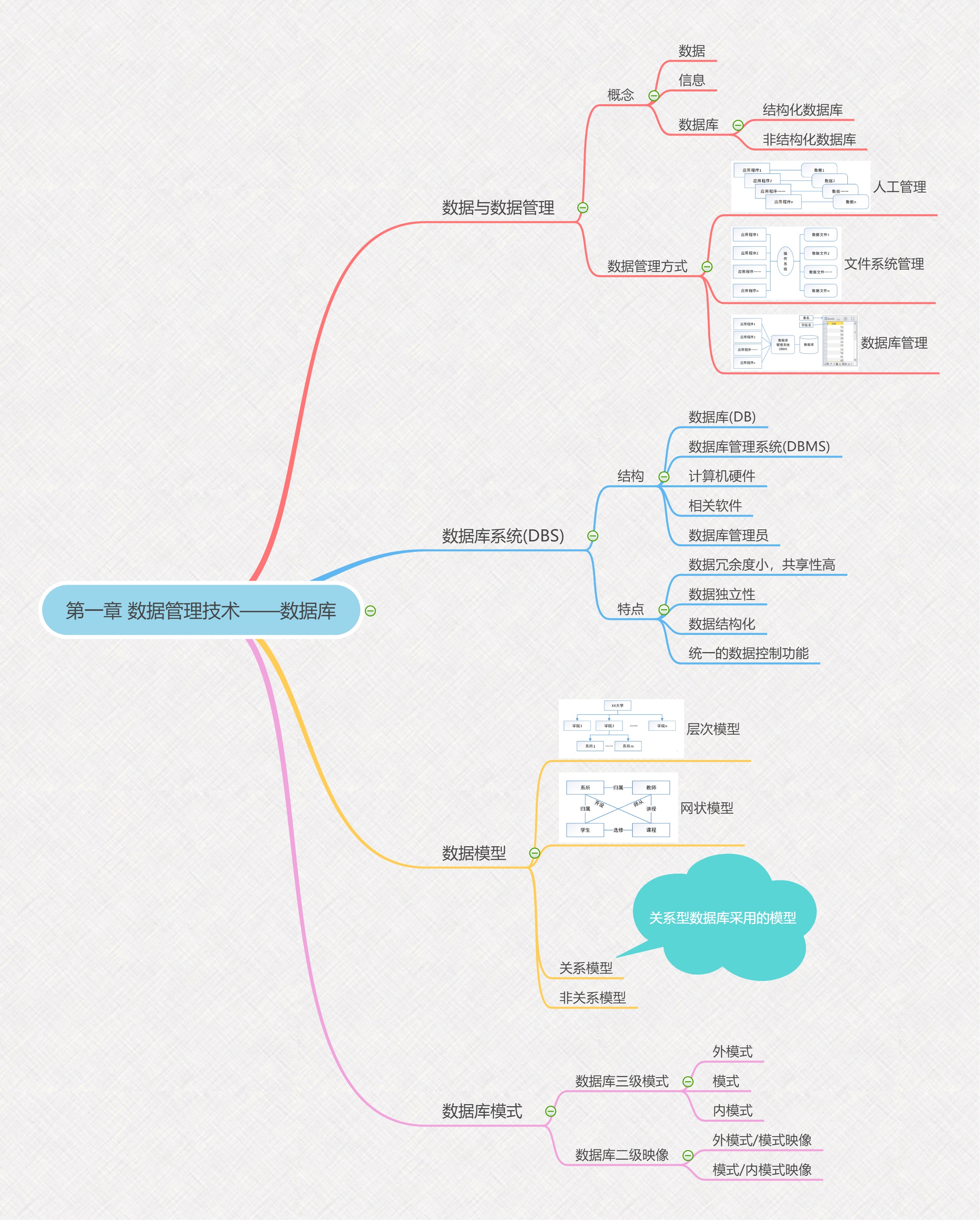 3、理解并区分四个重要概念:数据、数据库、数据库管理系统、数据库系统,重点是数据库管理系统,掌握它的概念、功能。(教材P11-12的扩展阅读,但其他考试中经常会考到。)