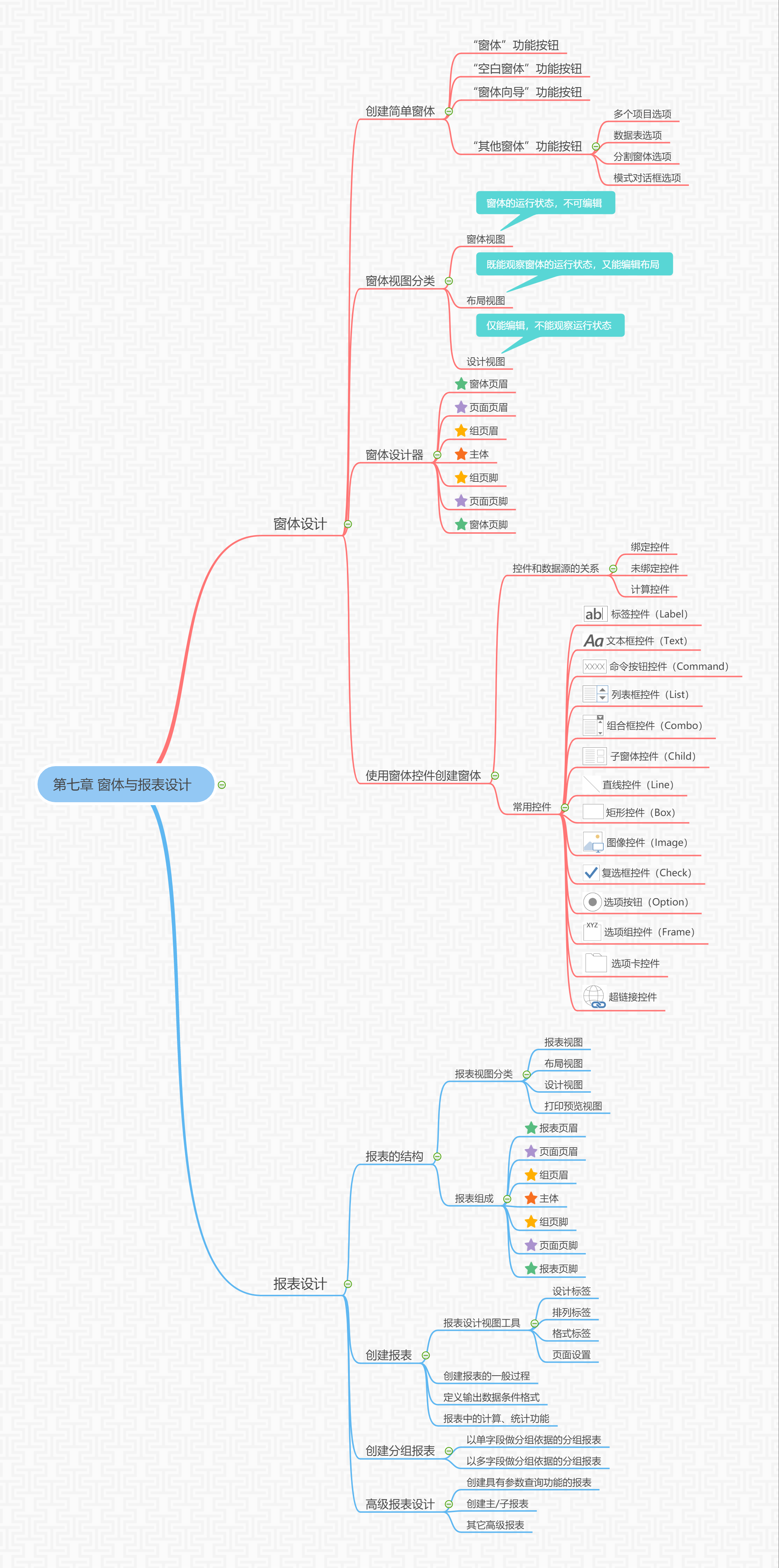 本章节重点介绍在窗体设计中常用的控件和控件属性,报表设计中“节”的概念以及常用报表设计的方法。