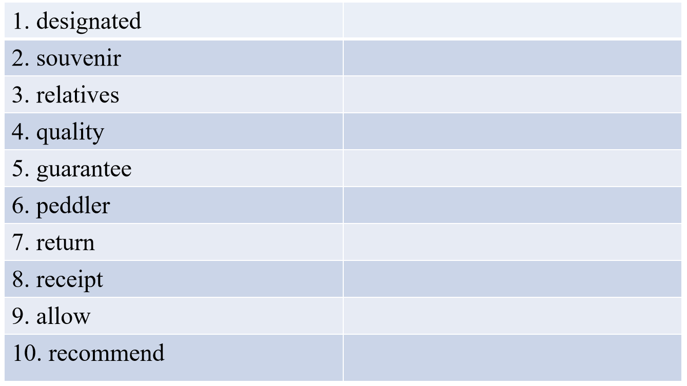 【重点词汇和短语】Please learn the key vocabulary and phrases independently and try to speak out the Chinese。请自学下列重点词汇和短语并尝试说出中文。