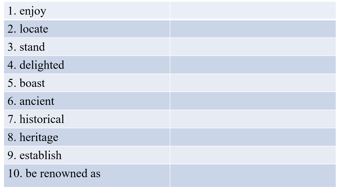 【重点词汇和短语】Please learn the key vocabulary and phrases independently and try to speak out the Chinese。请自学下列重点词汇和短语并尝试说出中文。