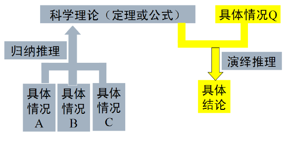法律条文的制定、数学物理公式的给出,都是在给我们提供演绎推理的大前提,以便我们结合问题的具体情景进行演绎推理,最后推出相应的具体的结论。
