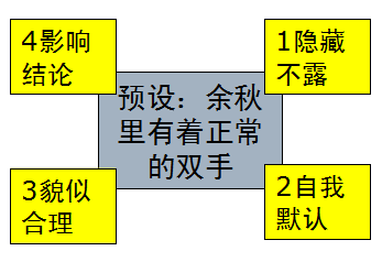 一般人在思考这个问题时,无意之中会做出这样的预设:“余秋里有着正常的双手。”--显然,这样的预设或观念满足了我们前面所说的预设的所有基本特征:见下图。