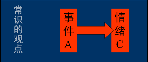 很多人在日常生活中在出现消极情绪时,他们都不大相信自己必须为自己的情绪负责,因为他们觉得他们的情绪反应是“自然”不过的,似乎是没有别的选择的。对当下的刺激事件A,原本可以选择如何感觉和评价,对他们而言可能非常陌生,因为他们总是直观地认为,是事件A直接导致和决定了他们的情绪反应C。