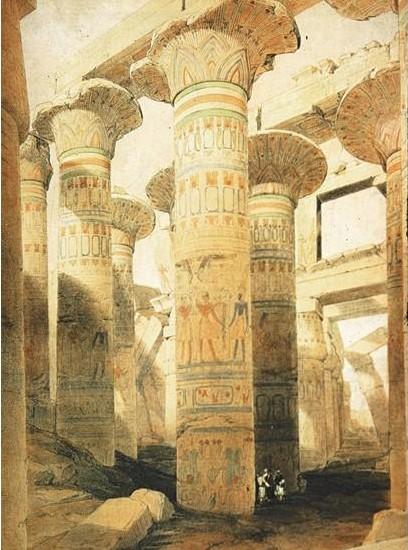 埃及卡纳克神庙柱厅(公元前14世纪—前13世纪),古埃及人由于崇奉阿蒙神,所以,各地为阿蒙神建造了许多神庙。位于今开罗南面约六百多公里的卡纳克阿蒙神庙,便是其中最著名的。