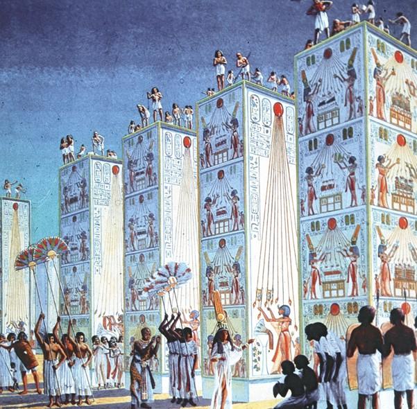 在古埃及新王国第18王朝时曾出过一个与众不同的叛逆法老埃赫那顿。他可能是因为与阿蒙神庙祭司集团矛盾尖锐,在位时竞以强制手段在全国禁止崇拜阿蒙神,下令以阿顿神代替阿蒙神。阿顿神的形象是一个太阳圆盘,放射出带有许多人手的光芒。一时间阿蒙神庙被关闭,他就以在露天建造的高台来代替神庙,让人们在阳光下进行祭拜活动。但在他死后埃及又恢复了对阿蒙神的崇拜,底比斯的神庙又开始香火旺盛,颂歌不绝。