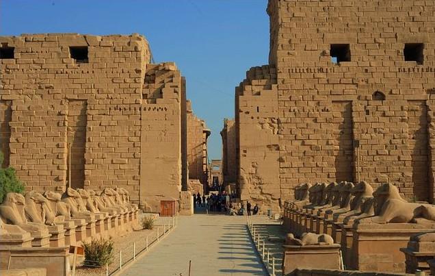 在卢克索古迹中,最引人注目的是尼罗河东岸的卡纳克神庙和卢克索神庙。卡尔纳克神庙是世界上残存的古代最伟大的神庙群,这条排列着狮身羊头像的公羊大道,是进入卡尔纳克神庙的必经之路。