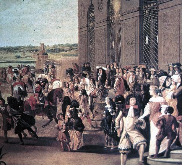 法国国王路易十四号称“太阳王”。这个称号来源于他年青时跳芭蕾舞喜欢扮演“太阳王”的角色。他在位时间长达72年,在他漫长的统治时期,法国终于取代意大利,成为欧洲的文化中心。这一时期法国宫廷中盛行着一种风气,贵族们表现出既典雅又奢华的气度,装束矫饰:绅士们都头戴扑了粉的假发,身穿有花边的长袍,脚蹬红色高跟的靴子;而贵妇们则喜欢梳高耸的发髻,身穿框架支撑的绸裙。这就是巴洛克风格的服饰。而在宫苑建筑中最能体现这一风格的则是路易十四下令建造的凡尔赛宫。