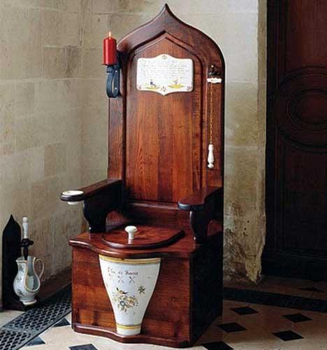 对如厕条件有重大改善的是抽水马桶的使用。据说最早想到抽水马桶的是英国女王伊而莎白一世。她对异味很在意,因而宠臣哈林顿为迎合她,在宫中设计了一个带阀门的抽水马桶。尽管这种马桶效果不错,但没有推广开来,大约也是到19世纪中期才被普遍使用。
