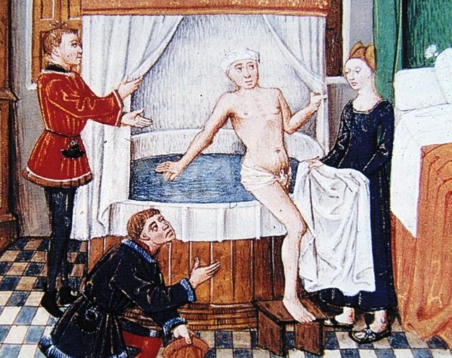 16世纪以后,欧洲人有100多年不喜爱沐浴,甚至有人还极端地把罗马灭亡的原因归之于洗澡太勤。一般人每年只洗两次澡,分别是在复活节前和圣诞节前。法国国王路易十四洗手也只是洒点香水在手上就算完事。因为不勤洗澡,据说法王亨利四世身上发出阵阵臭气,如同腐尸。卢浮宫中举办舞会,王公贵妇们纷至沓来,服装艳丽,熏香扑鼻,但细看他们皮肤好像蒙了一层灰。贵妇人的头发则成了虮虱的安乐窝。这种情况直到18世纪后期才有明显改变。在英国1846年议会通过“浴室法令”,要求各地建造公共浴室。