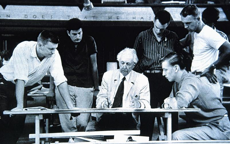 这幢建筑以当地巨大的圆石做骨料,用混凝土浇地基,将木屋架和帆布篷组合成房间。这所建筑形象十分独特,粗砺的乱石墙、不用油饰的木料和白色的帆布篷错杂地组合在一起,充满了野趣,与周围荒原的景观很相配。他在那里收了一大批弟子,让他们与他一起边工作边学习。他在这所私人建筑学校里培养出了不少著名建筑师,包括一些中国学生。