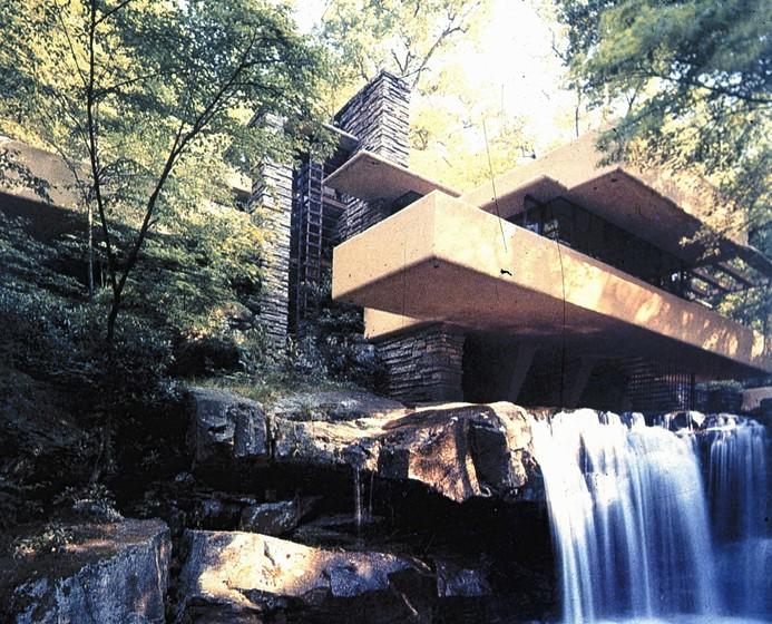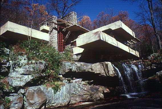 赖特的流水别墅是受匹兹堡百货公司老板考夫曼委托设计的。考夫曼夫妇本来希望房子建在面对瀑布的地方,但赖特则坚持要把房子直接盖在瀑布上面。他根据这块幽静峡谷中水声美妙、山林秀丽的特点,构思了几个星期。