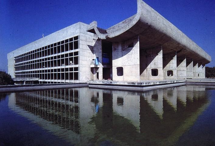 1956年,柯布西耶终于有机会为印度旁遮普邦首府昌迪加尔进行规划设计,实施他关于总体城市规划的理想。他用棋盘式道路将全市分为20多个整齐的矩形街区和完整的绿化系统,市中心为商业区,南侧为工业区,北侧为大学区。除制定城市规划外,他还设计了几座政府建筑,建筑大楼前有大片水池,建筑方位考虑到通风,让大部分房间能获得穿堂风。但他的设计也有缺陷,建筑物的间距太大,他的设计是以汽车作为人们的交通工具,而城里居民却大多要靠步行。