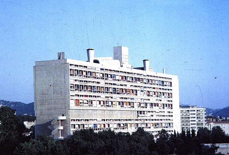 第二次世界大战后法国的住房紧缺,为此他设计了马赛公寓。这幢公寓大楼高17层,可供1700人居住。楼内有商店和各种公共设施,屋顶有儿童游乐场,游泳池。这是他为平民设计普通而平常住宅观念的实践典范。马赛公寓的墙面比较特别,不做任何处理,看起来粗糙不平,仿佛在追求一种粗犷原始的雕塑效果。马赛公寓建成后,法国风景保护协会曾指责他的设计破坏了法国的风景。