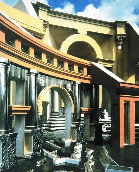 查尔斯·摩尔提倡在建筑设计中要注重多元主义和历史主义,他喜爱从古典建筑中寻找设计的灵感。他的代表作是为新奥尔良市设计的意大利广场。他在这个广场上用新奇的手法对古典柱式进行了改造,如用不锈钢包裹爱奥尼亚式柱头。在这个建筑中,多种柱式的组合以及现代材料的使用,创造出了一个五光十色的场景,具有强烈的戏剧效果。