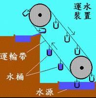 巴比伦空中花园最令人称奇的地方是那个供水系统,因为巴比伦雨水不多,而空中花园的遗址相信亦远离幼发拉底河,所以研究人员认为空中花园应有不少的输水设备如图所示,奴隶不停地推动连紧着齿轮的把手,把地下水运到最高一层的储水池,再经人工河流返回地面。