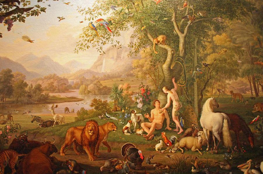 伊甸园是《圣经》故事中人类的始祖亚当和夏娃居住的乐园。据《圣经》记载,上帝在东方的伊甸建了一个园子,那里溪流淙淙,鲜花簇簇,莺歌燕舞,动物成群。亚当和夏娃在伊甸园天真无邪、无忧无虑地生活着,直到他们在蛇的引诱下偷尝了禁果,被上帝赶走,从此开始经受各种痛苦和磨难。后来,“伊甸园”一词便成为至纯至美的理想家园的象征。